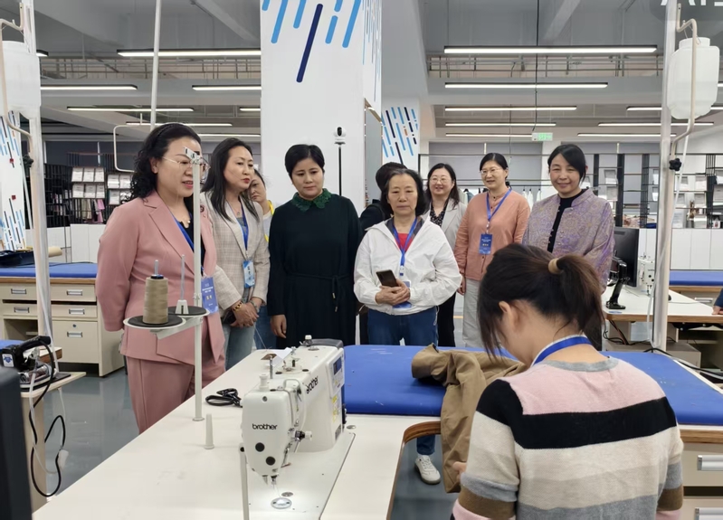 本次竞赛分为理论考试和实操考试两部分。理论考试采用闭卷机考方式进行,主要检验选手的理论知识水平,该部分成绩占竞赛总成绩的20%。实操考试,要求选手在180分钟内完成一款经典夹克的制作,从肩线拼接、袖肘弧度处理、拉链缝制,再到最终的整烫定型,全环节覆盖夹克制作的关键工艺,全面考验选手的工艺熟练度与细节把控力。大赛期间,常州市总工会副主席宣建强、常州市人力资源和社会保障局副局长朱岩、江苏省纺织工业协会秘书长张仁乐、常州市总工会劳动和经济工作部部长王赟枫、天宁区总工会主席赵宇和副主席蒋厉英和我校党委委员、副校长张文明莅临比赛现场指导。